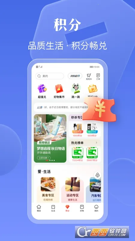 1. **极简设计,体验升级**:全新设计导航栏,带来更美观视觉与减压体验。新增购物专区,积分能免费兑好礼,还有爆品每日抢。生活服务全聚合,所想皆能满足。