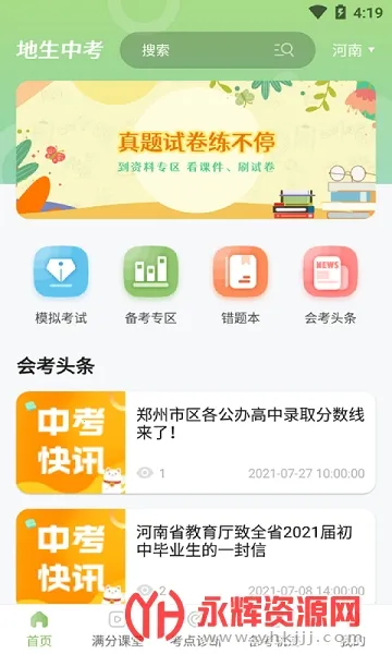 1、地生中考通为中考考生准备了线上考试教育学习资源,所有知识点可免费下载观看学习,能让考生有很好的学习方针。