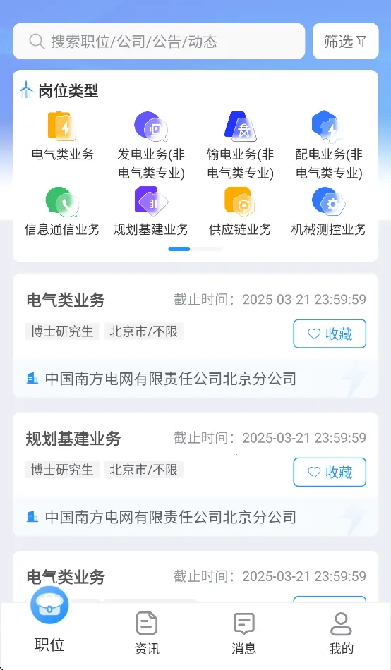 正在找工作的朋友们有福啦!南网微招聘app绝对是你的求职利器!它是南方电网官方推出的招聘平台,岗位超多,涵盖南方各省电力公司。这里职位与人才精准匹配,采用先进算法,大大提高招聘效率和成功率。界面简洁友好,操作轻松,无需复杂培训就能快速上手。而且安全可靠,多重加密保护用户数据。