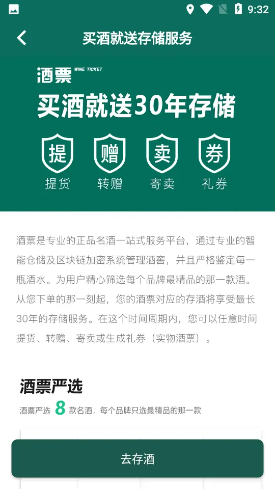 1. 酒票的酒水购买体验很棒。它以第三方视角,客观公正挑选市场上好酒,每个品牌只选一款酒,官方自营,让人放心。购买还送30年存储兑现服务,增添了不少价值。