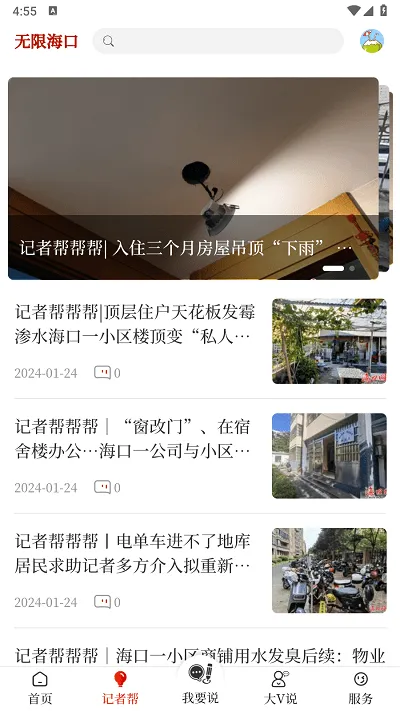 1. 注册登录后,首页能看到海口本地新闻和重要通知,每天刷一刷可及时了解身边大小事。