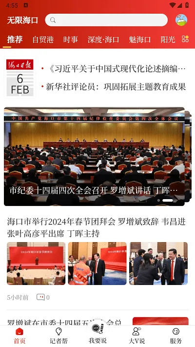 无限海口官方版是专为海口本地用户打造的新闻资讯服务平台。能看本地新闻、了解服务动态、在线办事,还有好文推荐、热点资讯等特色,集多种功能于一体,助力海口宣传与建设。