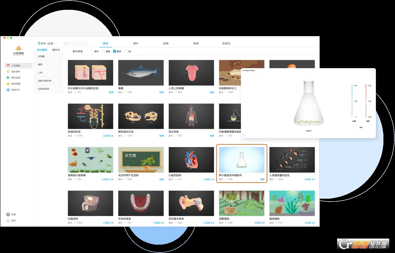火花学院是一个交互式多媒体课堂教学演示平台及学科资源库,致力于提高课堂演示效果,让课堂教学变得更精彩。它提供了丰富的可视化教学资源,包括AR、3D和微件等动态交互素材,能够增强课堂演示效果,打破思维局限。