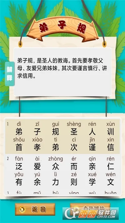 1. 儿童国学启蒙乐园的内容选材精心,由教育专家挑选了弟子规、三字经、千字文等经典启蒙读物,让孩子接触到最精华的国学内容。