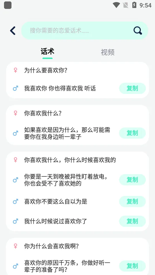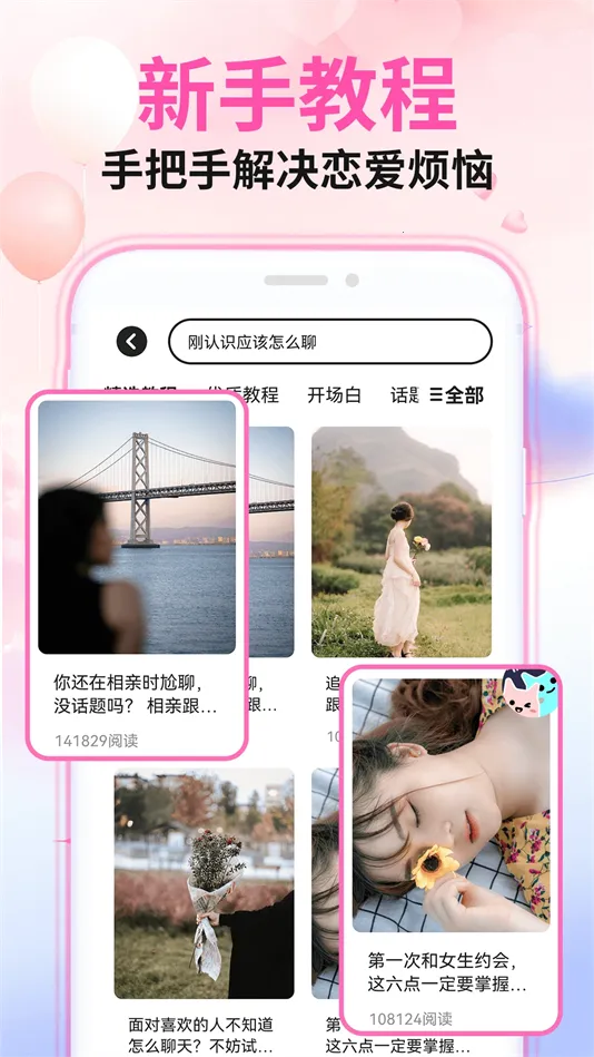 2. 各类话术应有尽有,不同场景从容交流。涵盖恋爱各阶段,从开场白到升级关系,从日常聊天到巧妙回复,助力用户在恋爱中精准表达心意。