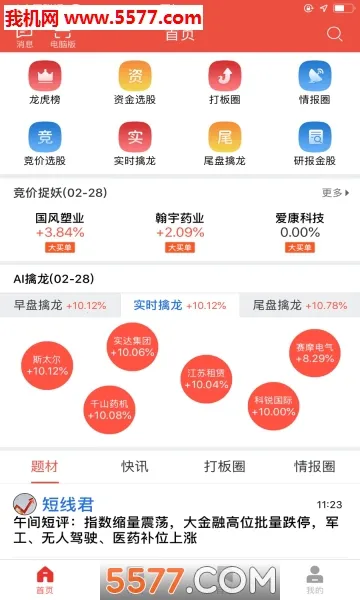 2. 功能实用:它涵盖多维度选股,短线战法一网打尽;有脱水研报,能轻松获悉机构关注热点与优质板块;抓涨停板功能可实现最实时的涨停报盘和揭秘,助你从容打板。还有游资分析、大盘温度计、深度龙虎榜、集合竞价解析等实用功能。