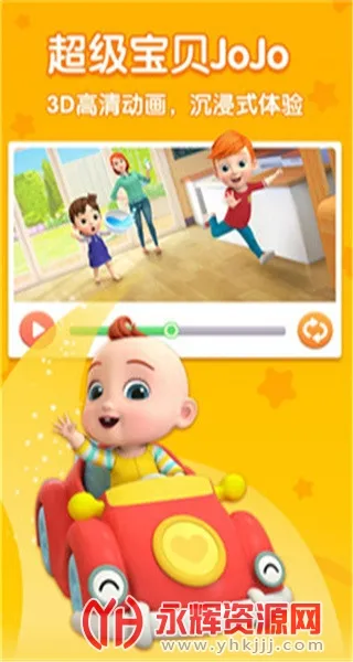 想免费观看完整的儿歌Jojo第三季?那这款儿歌JOJO软件就能满足你!它是一款超棒的儿童早教启蒙软件。有独家IP萌宝JOJO,深受宝宝喜爱,能带领孩子学习成长。多种场景选择,细分生活场景,营造亲子学习好时光。中英双语可切换,不同英语水平孩子都能轻松学。软件优势明显,双语学习内容助孩子更好掌握双语方法;3D动画形式带来沉浸式收获;能让孩子获得高质量启蒙教育。涵盖健康、音乐等八大主题,全面提升孩子语感。无论是启蒙幼儿还是稍大儿童,都能找到适合课程。周周更新韵律儿歌,还有3D高清动画,给孩子沉浸式音乐盛宴。界面升级操作简便,能轻松点播海量儿歌动画,激发儿童多元潜能,快来下载,让孩子快乐学习、轻松成长!