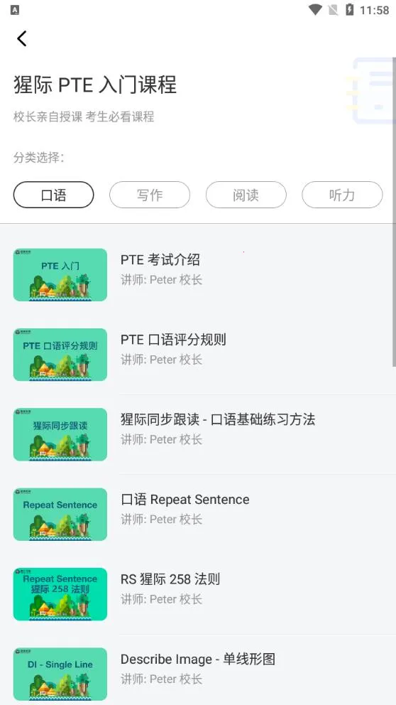 PTE猩际网课是一款很靠谱的PTE备考神器。它由深圳猩宇宙教育科技有限公司研发,专为PTE考生打造。软件涵盖听力、口语、阅读、写作全部练习模块,资源超全面。有实时更新的真题机经,命中率高达90%以上,助你熟悉考试题型。智能AI评分系统不仅准确度高,还能纠正发音和流利度。其视频课程由Peter校长亲自录制,助你快速掌握考试技巧。采用美国翻转式教学理念,7 - 15分钟的视频课程,让你保持高效学习。还能通过参与每周公开课和学习社区活动,分享答题技巧与经验。它能解决你备考PTE时的各种难题,无论是了解题型、提升答题能力,还是纠正发音、获取专业评分,都能轻松实现。让你的PTE备考之路更清晰、高效,是值得信赖的学习工具。