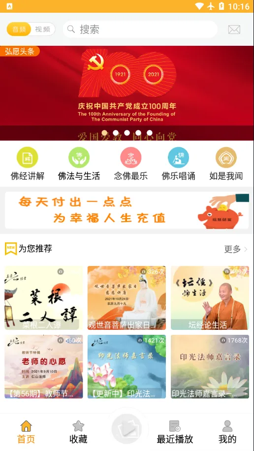 1、弘愿之音的资源形式丰富多样,有视频以及音频等多种形式供用户学习,能满足不同用户的需求。