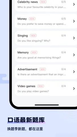 3、享受丰富资源:软件提供丰富免费的学习资源和答题资料,包括高分范文、音频示范等,多角度答题思路助你理清思路,开口回答。