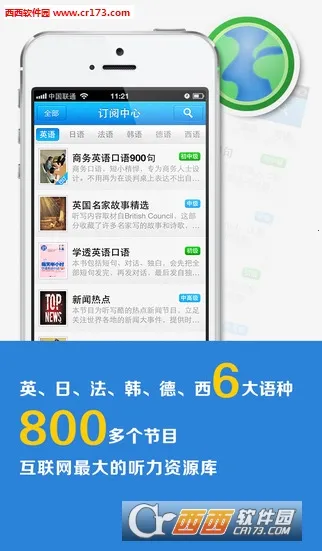 1. 多语种听力库丰富,涵盖英日法韩德西六大语种近五百个听力节目,内容包含经典教材、考试真题、名人演讲、影视台词等全场景学习素材。