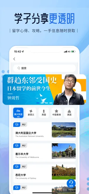2、软件提供丰富多样的留学活动,包括留学申请攻略名校面试分享,留学职场资讯等,帮助用户更好地了解留学相关信息。
