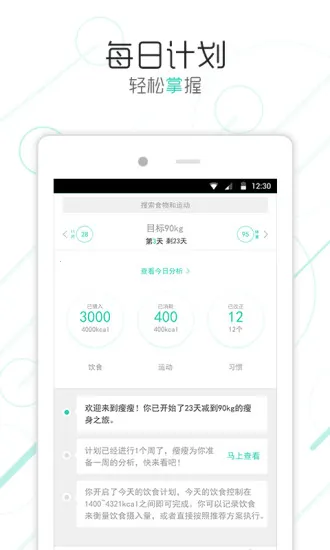2. 多维度方案定制:依据用户身体指标和减肥目标,从饮食、运动、作息三方面制定科学计划,进行阶段性目标分解。