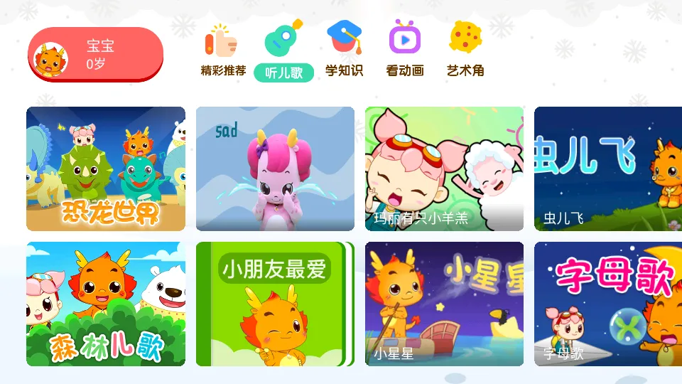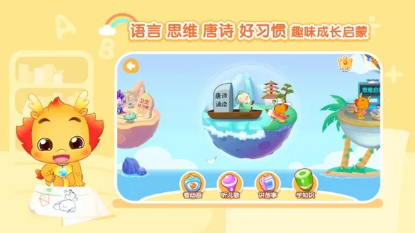 1、小伴龙动画屋的内容形式丰富多样,通过视频动画呈现课程,所有课程均已解锁,直接播放即可。其涵盖语文、数学、英语、儿歌、生活百科等资源,像语文包含学汉字、讲故事、背唐诗等基础知识。