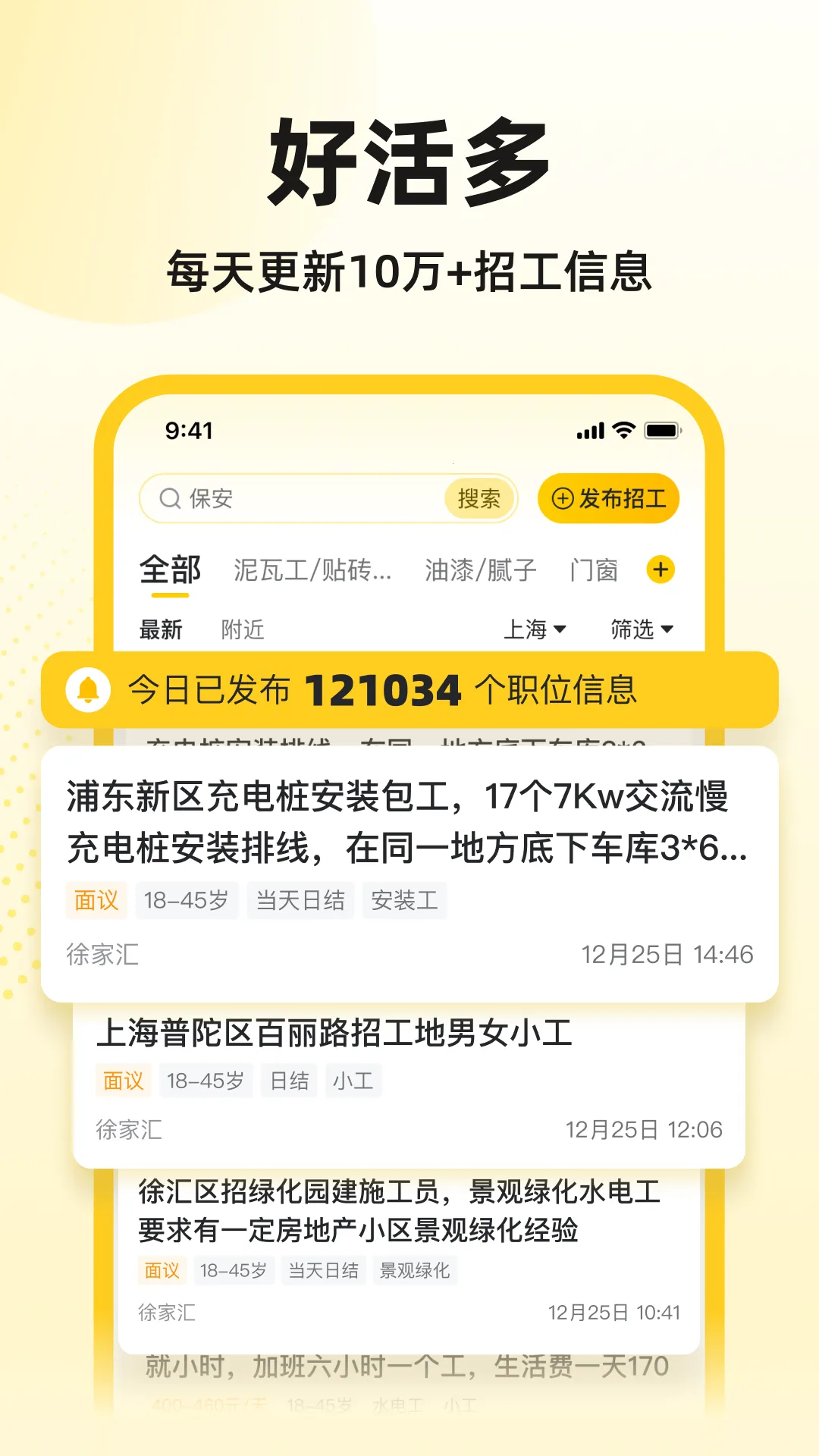 2. **信息更新超及时**:天天都有全新岗位发布,每天更新数万条招工和找活信息,其中不乏大量急需招聘的日结工作,让你随时掌握最新招工动态。