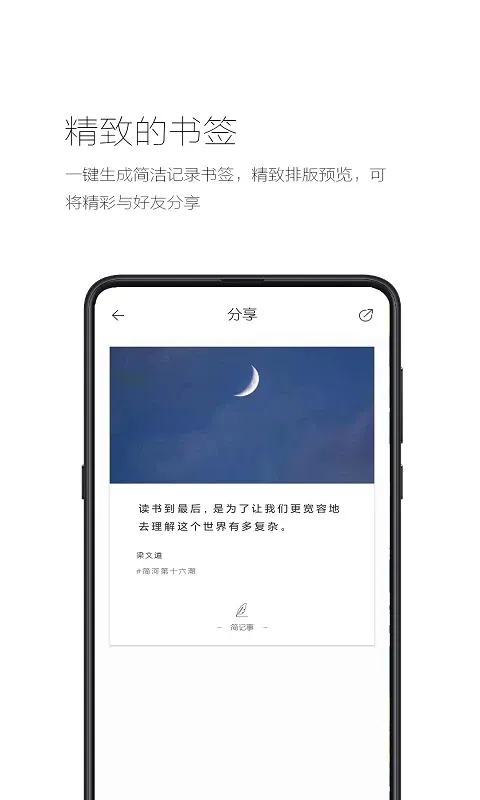 能根据文字生成精致图片书签,可分享排版文字图片。还能汇集多种记事功能,有丰富记录模板和工具,适合写作码字与办公记录,使用方法简单,模板样式多,小工具多。