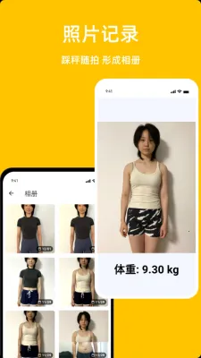1、体重相册最新手机版采用简单的照片记录方式,能让用户轻松记录体重变化,还可管理个人健康。