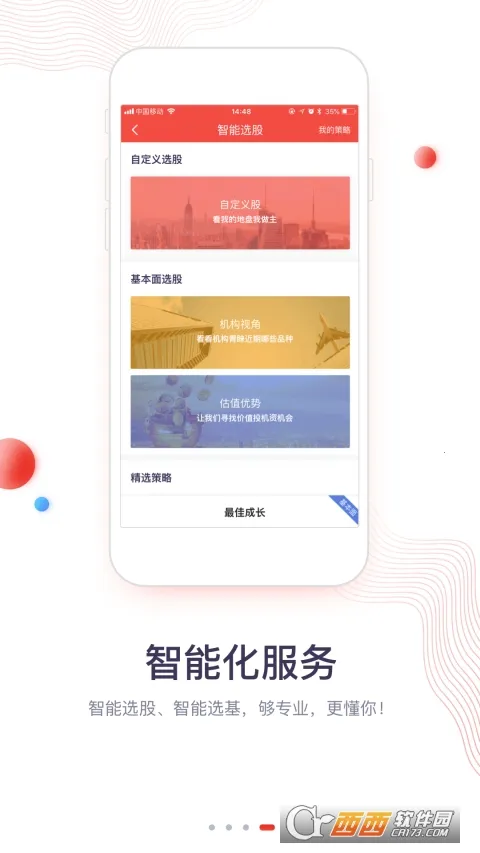 4、功能体验:具备智能化服务,基于大数据、移动互联和人工智能技术,带来机器人组合、智能选股、智能盯盘等全新优化。还有全新探索版块,提供新股申购提醒、个股诊断实时热评等众多实用信息。
