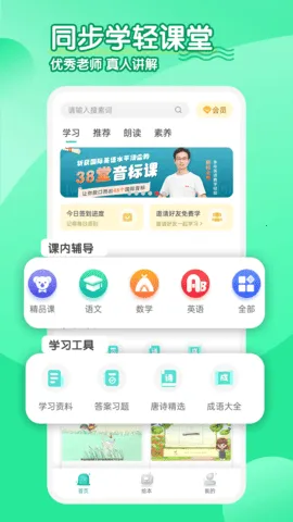 小学英语同步学堂安卓版是专为小孩打造的英语学习工具,与小学教材同步,有视频辅助理解,可自由添加课表预习。能点读单词、选多种资源,含超多课外视频,课程免费,助孩子校内外巩固知识。