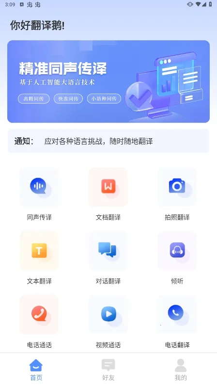 想轻松搞定语言翻译?那就来试试翻译鹅这款超棒的软件吧!它能满足你各种翻译需求。不管是文本、语音还是拍照,都能快速准确翻译。旅行时,能随时翻译路标、菜单;学习中,帮你搞定外文资料;工作里,助力与国外客户沟通。它支持实时同声传译,电话视频通话翻译也不在话下,沟通毫无障碍。翻译后的内容还能方便复制。智能语音输入超便捷,多种场景都适用,商务交流、旅游购物、学术交流等都不在话下。还能进行实时语音翻译测试,了解不同语言翻译能力。有了它,就像随身带了个专业翻译助手,随时随地享受无缝翻译体验,轻松应对不同语言交流,让生活和工作都更顺畅!