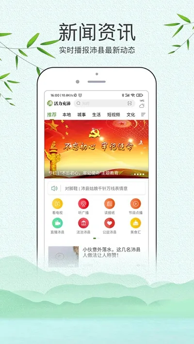 活力充沛2026最新版本是为沛县居民打造的软件,融合新闻资讯与便民服务。有本地动态、国内外新闻,提供多媒体渠道,政务生活办事可线上便捷操作,快来下载体验。