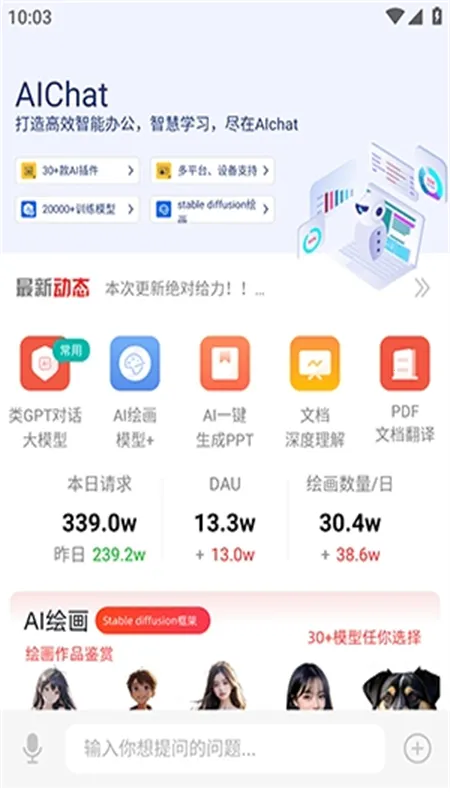 1、边界aichat的界面设计简洁直观,操作便捷,即使是新手也能轻松上手。进入首页,就能快速选择所需的AI生成内容,比如进入AI绘画板块,选择生成风格后输入关键词描述,即可生成唯美的绘画作品。