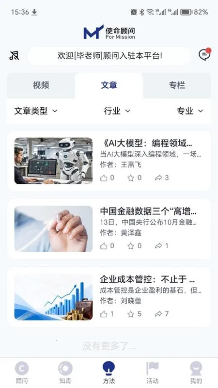 使命顾问app官网版是智能化职场服务软件,提供一站式顾问服务,涵盖管理、培训等多种顾问类型。还有文章视频、活动中心等功能,具备数智化服务、轻松管理等特色优势,助企业发展与用户掌握技巧。