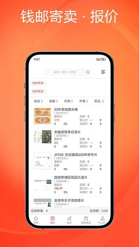 钱邮寄卖商城app是提供钱币邮票等收藏品交易服务的软件。支持转让寄卖与采购,报价清晰,交易安全便捷,有提现功能,还能一键转增商品,打造专业可靠的收藏品交易平台。