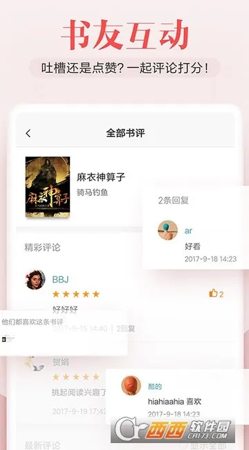4. 功能强大,字号、字体、背景颜色随心更改,还有自定义排版、听书、书签、夜间模式、阅读笔记等特色功能提升阅读质量,评分、互动、分享到社交平台增添阅读趣味,支持私人定制,急速更新不怕书荒。