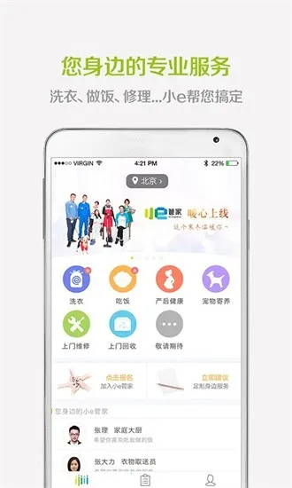 小e管家是一款超实用的社区化运营管理生活服务平台。它能解决咱生活中的各种难题。比如下班没时间遛宠物,它能帮你找专人遛狗遛猫;家里家具电器或水管坏了,会有专业维修人员上门修理;吃饭时不想出门,能把隔壁邻居做的饭菜送到餐桌;外出旅游家中老人小孩无人陪伴,也能得到贴心照顾;还有共享厨房、关爱宠物托管、家居收纳和垃圾回收等服务。以小区为单位,招募共享个人时间和技能的服务者成为小e,以其生活区域为中心,为周边用户提供专业生活服务。有了小e管家,生活更便利,各种需求都能轻松解决,让咱的生活更省心、舒心。