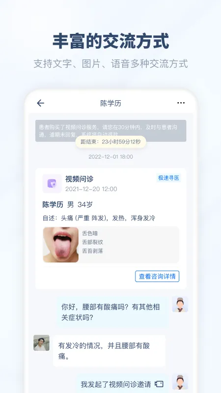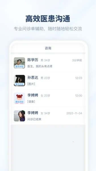 2、该版本在患者管理方面表现出色。可以全方位记录咨询病历、用药信息等,支持随访追踪与疗效反馈,极大地强化了医患粘性,方便医生对患者进行长期跟踪和服务,提升整体诊疗效果。
