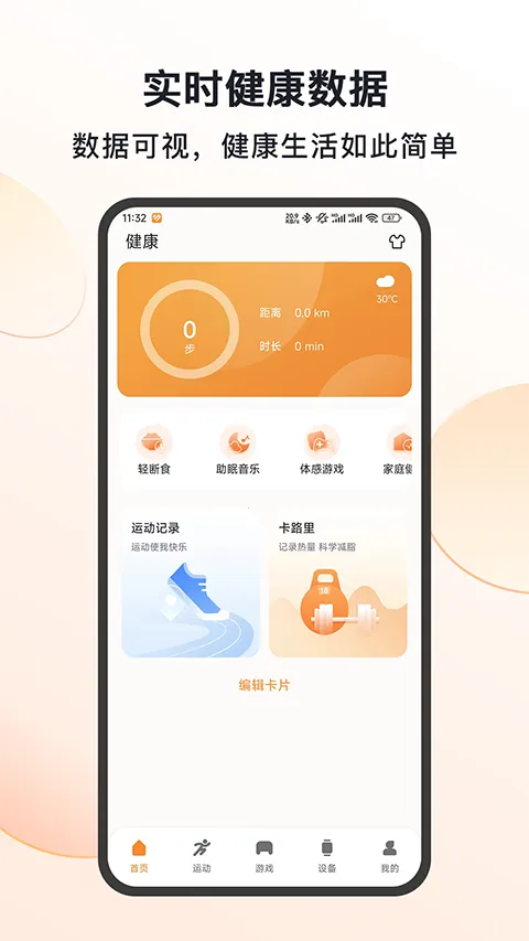3. 可查看每日运动详细情况,出现异常数据会自动通知,还能管理设备,每天都能查看到睡眠数据,实时知晓睡眠情况。