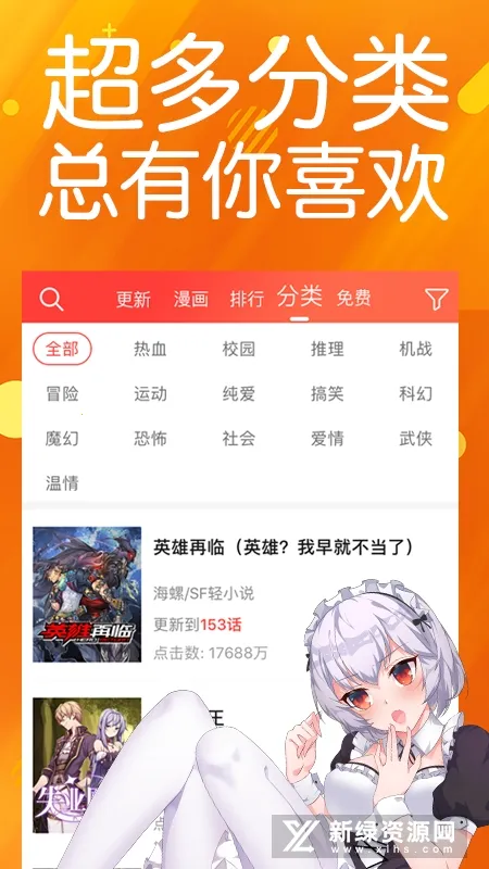 1. 漫画资源分类清晰,涵盖多种题材,如推理、机战、冒险等,满足不同用户的阅读口味。用户可根据分类轻松查找喜爱的漫画。