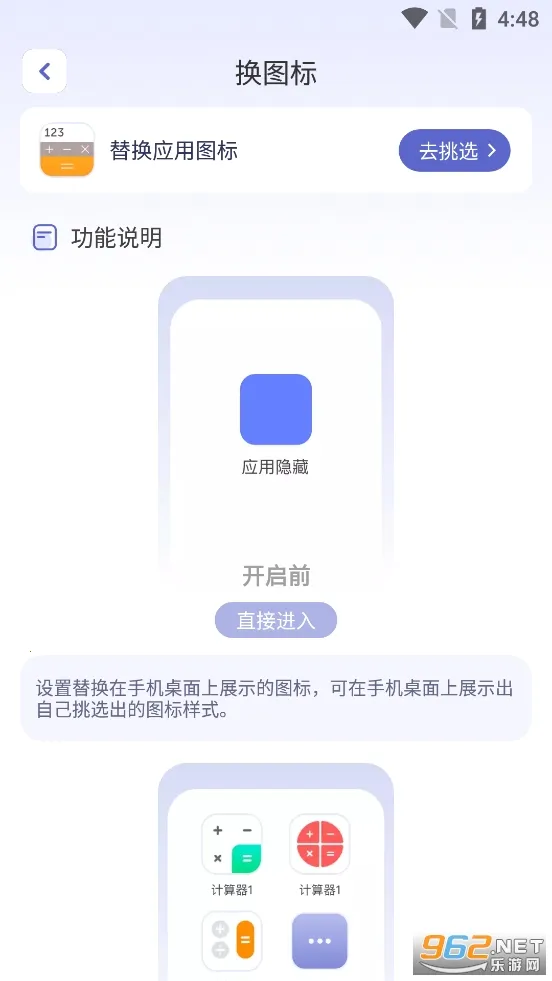 1. 伪装图标:兼具计算机功能与样子,一键切换图标,让应用隐藏不易被发现。