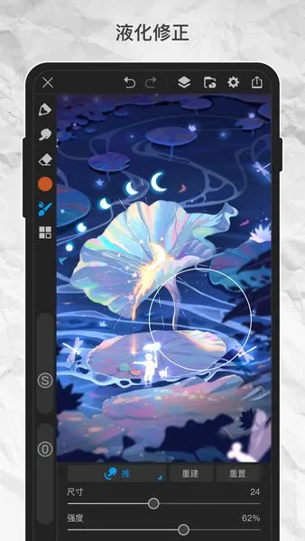2. 支持自定义笔尖形状与纹理叠加,配合实时透明度调节与变形工具,如液化扭曲,实现从线稿到上色的全流程创作。