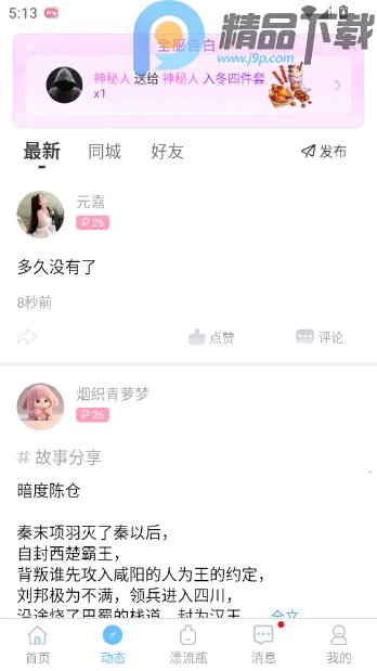 1. 匿名交友:通过扔捞漂流瓶与陌生人匿名互动,分享心情或发出交友邀请,保护隐私无压力。