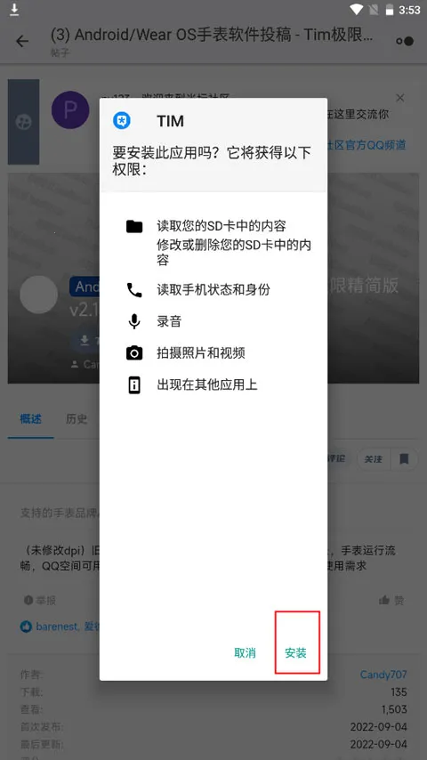 4、当页面弹出安装提示时,就可以点击下方的安装按钮开始安装资源包。