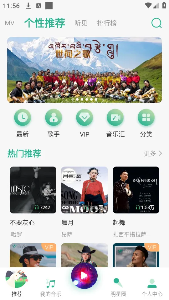 2、音乐资源体验:这里拥有海量的藏族及多元风格音乐库,涵盖民歌、流行歌、情歌、小品等类型,各种音乐随心畅听无阻,还能一键缓存心仪曲目。