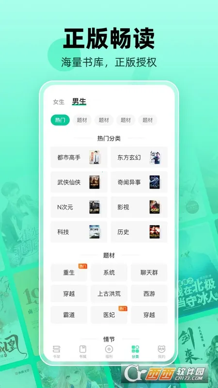 1、海量正版好书免费读,涵盖各种热门分类,像脑洞、都市、奇幻、言情、玄幻、穿越、仙侠等,满足多样阅读需求。