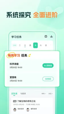 好课领航-初中学习辅导针对初中学生素质教育学习辅导规划,有丰富教学资源与素养课程。功能包括在线直播素养课等,还有意见反馈渠道,新版优化了功能体验。