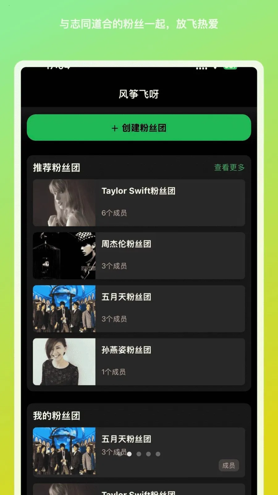 2、加入喜爱艺人的粉丝团,在“风筝飞呀2026官方正版”参与成员互动,共同记录那些闪光的音乐瞬间。