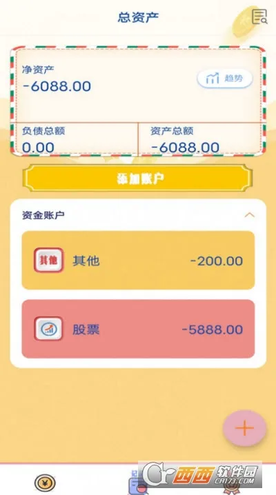 2、小猫记账2026官方正版支持添加多种账户类型,管理账户灵活,按指引填写资料保存后,新账户便会出现在主页,方便统一查看。