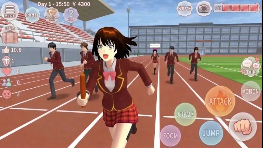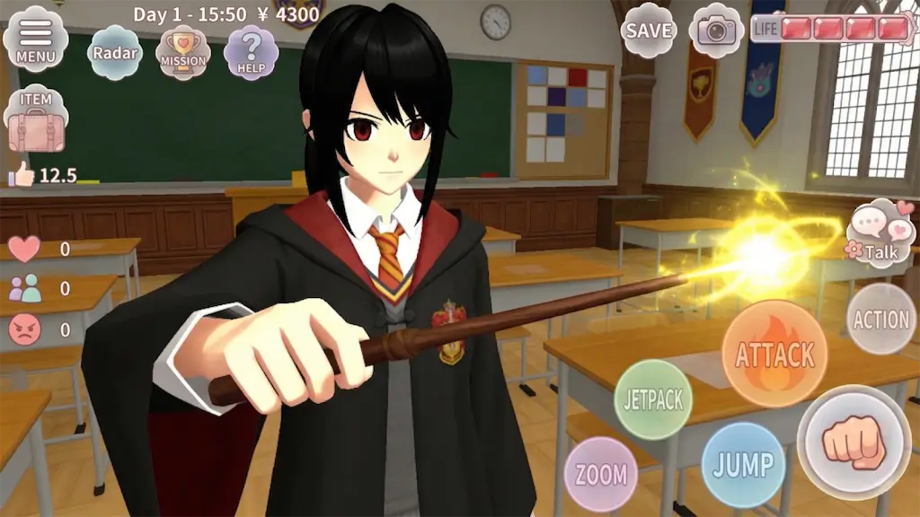 2、这里有终极自由探索与个性化定制。除了传统校园日常,能驾驶豪华跑车穿梭街头,背着喷气背包飞跃校园上空,还能解锁并搭配丰富多样的服装发型和饰品,展现独特校园时尚风采。