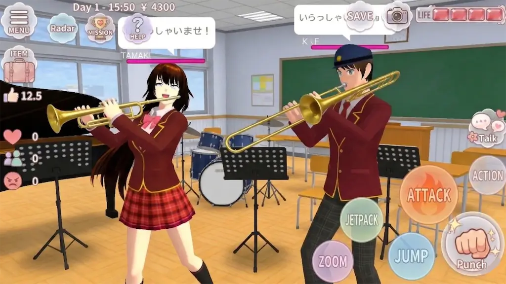 1. 全方位还原日本高中生活,开放世界虚拟樱镇,可自由探索校园场景与附近社区。