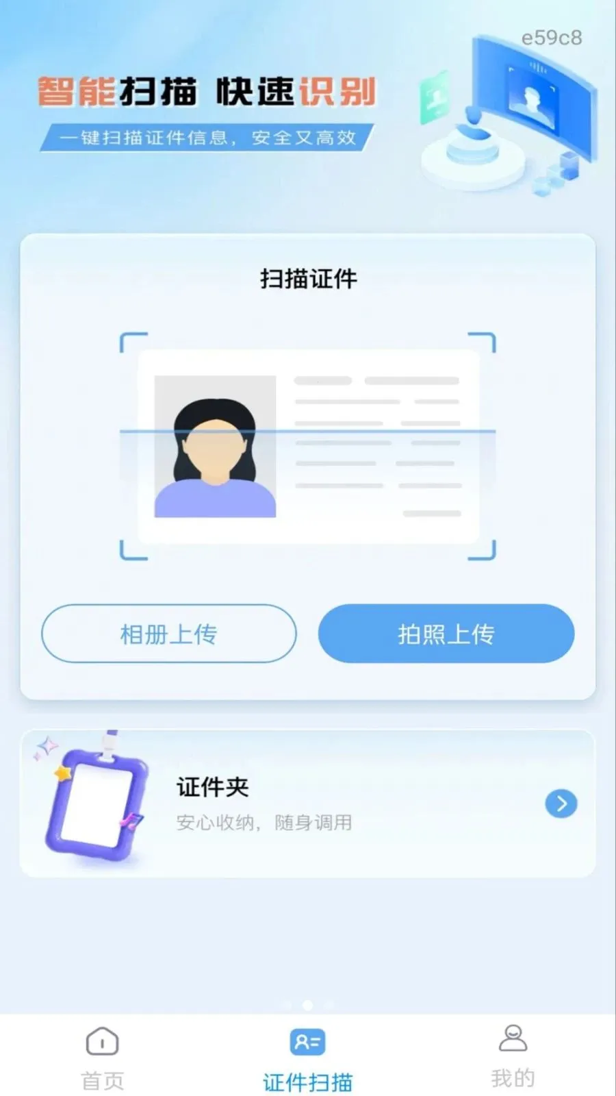 2、其证件扫描识别功能强大。覆盖多种证件类型,支持多种上传方式,一键扫描提取信息,还有证件夹方便收纳调用,满足多场景身份核验需求。