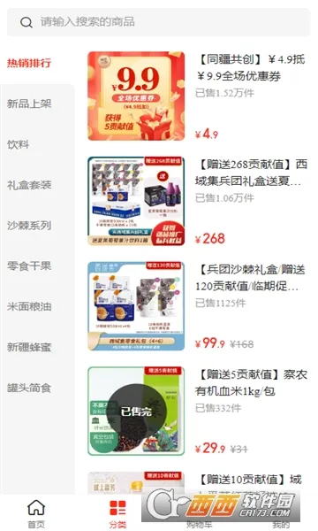 同疆共创app是一款综合性在线商城,能满足你一站式购物需求。它以销售新疆特色农副产品为主,涵盖食品酒水、米面粮油等多个品类。在售商品包含新疆特色农产品,还有联合当地生产商构建的自有品牌,是个从新疆出发、涵盖全国的电商平台。