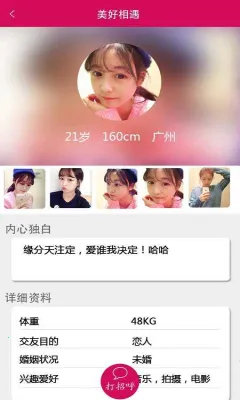 它的功能超棒!真人严审认证,经过实名认证、视频人脸核验和人工复核,三重把关杜绝虚假账号,聊天超靠谱。还能精准匹配,实时推荐优质伙伴,身边缘分轻松触达。一键视频畅聊,无需繁琐流程,看中就直接视频开聊,真实又有温度。而且AI会捕捉兴趣偏好,为你匹配三观契合、爱好相近的人,互动更积极,畅聊超心动。不管你是想找个伴聊天,还是期待浪漫缘分,它都懂你所求,为爱连线。快来加入,开启精彩社交吧!