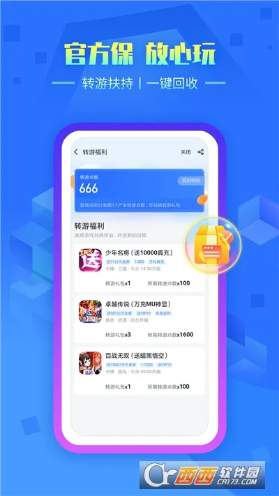 3、功能多样:支持小号回收,可换取平台币;设有转游专区,能用转游点数兑换新游戏礼包。