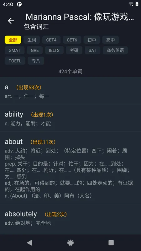 3、拥有多种学习方式,支持中英文字幕切换、字幕预览查找、词汇分析等,方便用户随时搜索和学习。