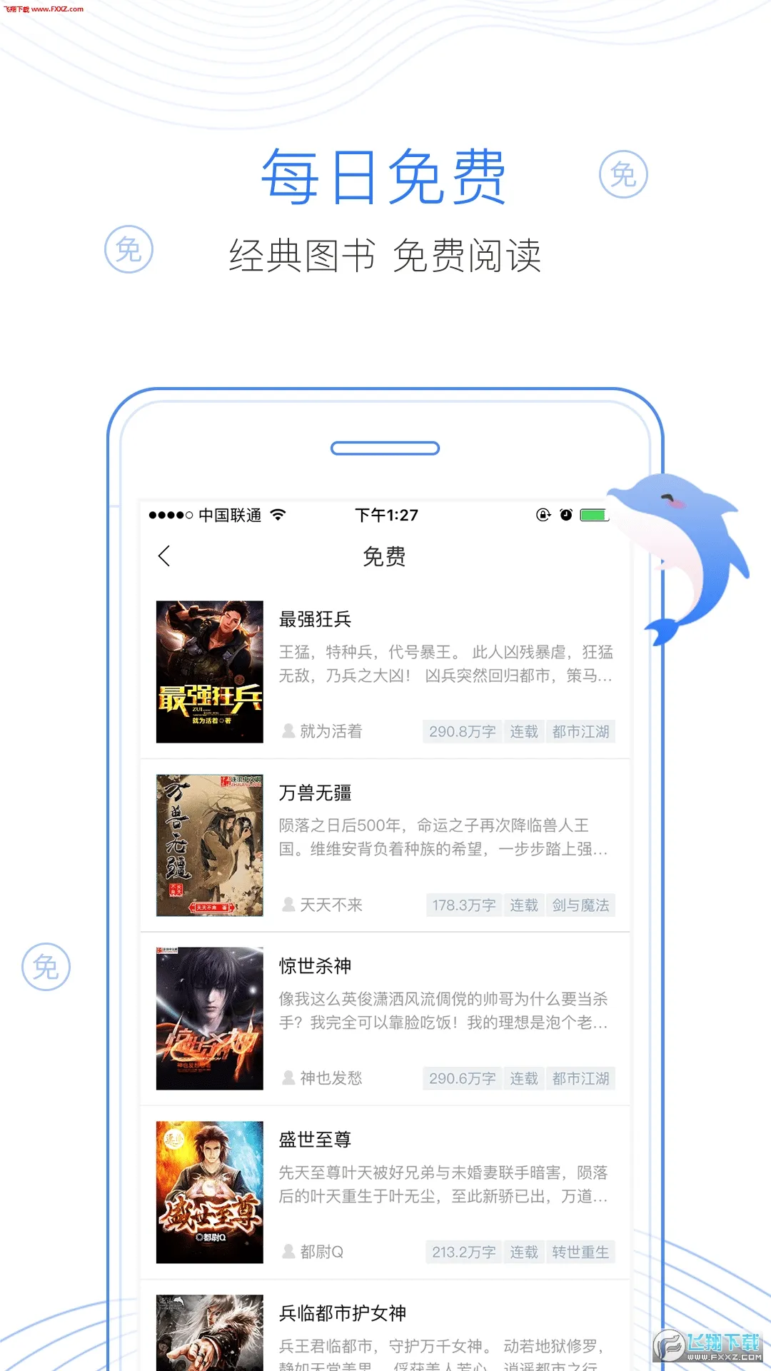 3、福利多多,每天有免费好书,签到做任务能拿书豆,书城活动还有机会赢小海豚定制手机。